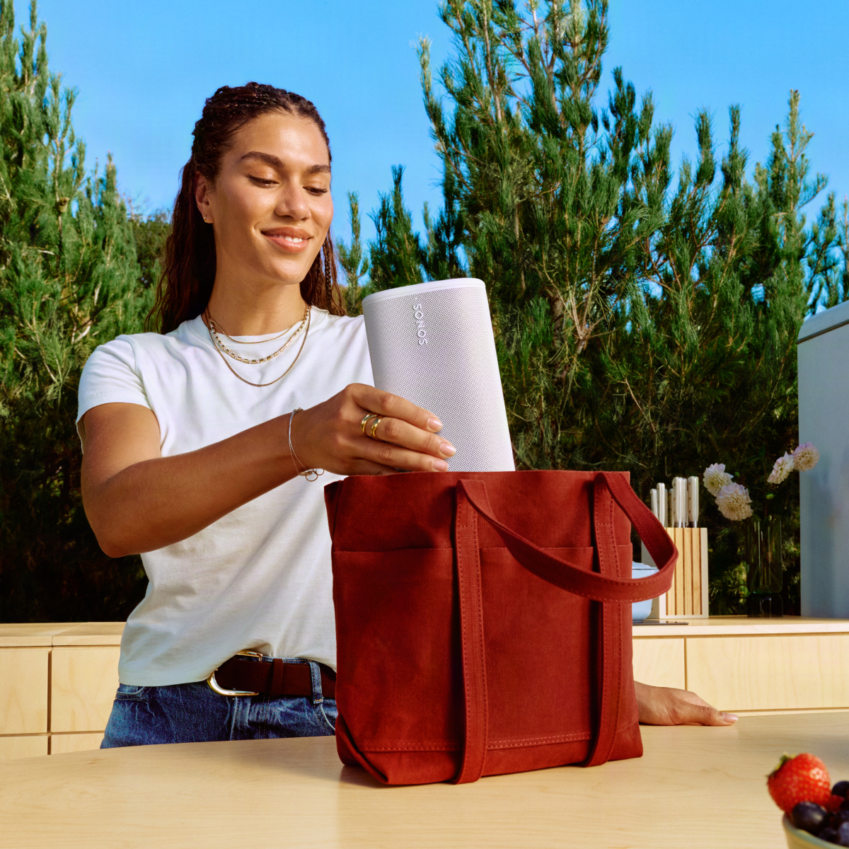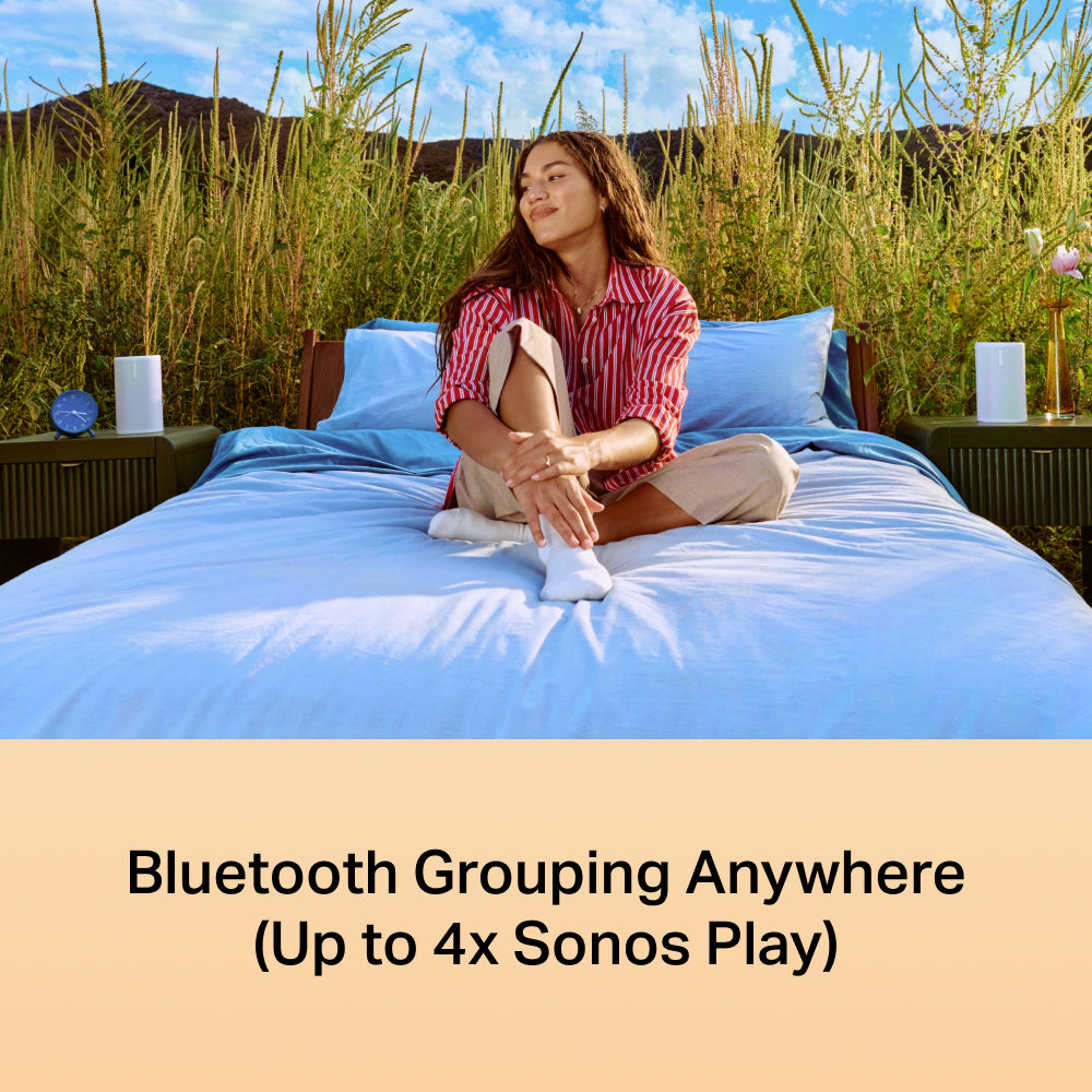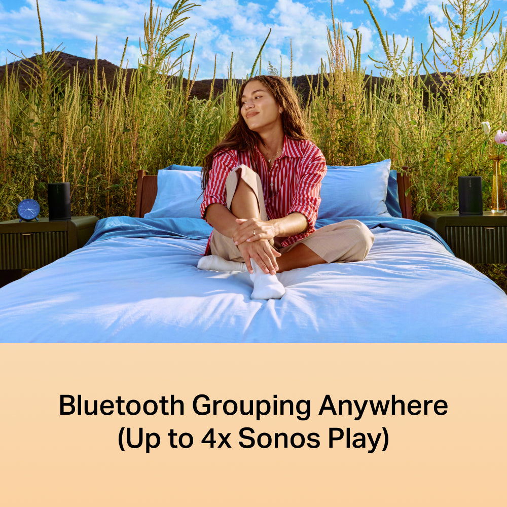 Take the Sonos experience everywhere. Easily group two or more Sonos Play speakers over Bluetooth to fill your campsite, vacation rental, or park picnic with powerful sound.