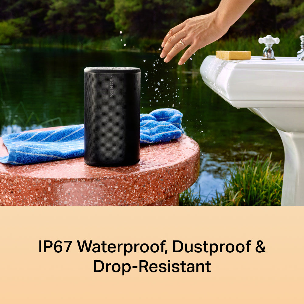 Don't sweat accidents or the elements. Sonos Play is rated IP67 for waterproof and dustproof protection, and the durable design easily handles unexpected drops.